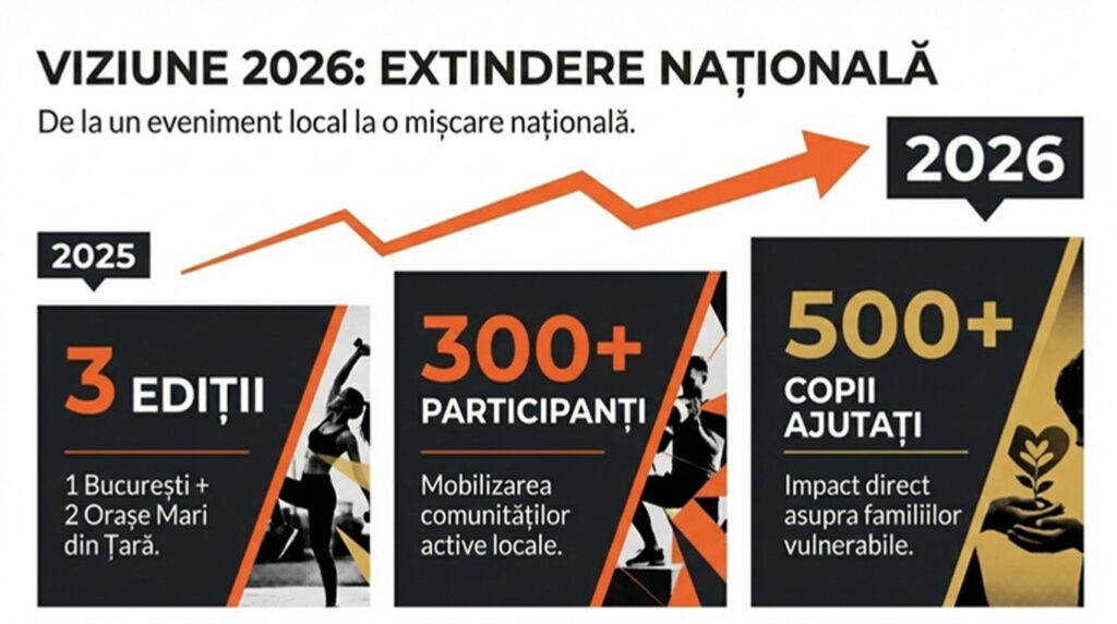 Proiectul caritabil „Dăruim prin Mișcare”, organizat de Oxygen-Events, funcționează pe un principiu direct: participanții la un eveniment de fitness nu achită bilet, ci aduc donații materiale – haine, jucării, rechizite, produse de igienă sau dulciuri – care ajung fără intermediari la familiile vulnerabile sprijinite de două organizații nonprofit din România. Centrul de zi „Sfânta Muceniță Sofia” oferă sprijin educațional, social și emoțional copiilor din medii defavorizate, iar Asociația LifeCall susține femeile însărcinate aflate în criză și mamele tinere lipsite de resurse și sprijin familial. Contextul social în care operează acest proiect este marcat de o rată a abandonului școlar care depășește 16% la nivel național și de peste 26% în mediul rural, precum și de cel mai mare număr de mame minore din Uniunea Europeană, realități care plasează România în coada clasamentelor europene la capitolul protecție socială și acces la educație. Prima ediție a proiectului, din decembrie 2025, a mobilizat aproape 100 de participanți, a beneficiat 90 de copii și 23 de familii din 17 județe și a generat peste un milion de vizualizări online. Ediția a doua, programată pe 28 martie 2026 la Teatrul Actorilor din București, reunește șapte specialiști cu expertiză în fitness funcțional, Pilates Reformer, kinetoterapie olimpică, nutriție, terapie și dans sportiv, oferind un program care include sesiuni de Cardio, HIIT, Functional, Mobilitate și Games, alături de masaj profesional, testări metabolice, activări de brand și tombolă. Viziunea Oxygen-Events pentru 2026 include trei ediții anuale cu extindere în orașe mari din țară și un impact estimat la peste 500 de copii și familii ajutate direct. Companiile pot participa prin parteneriate CSR active, oferind angajaților o experiență de teambuilding caritabil asociată valorilor de sănătate, familie și responsabilitate comunitară.